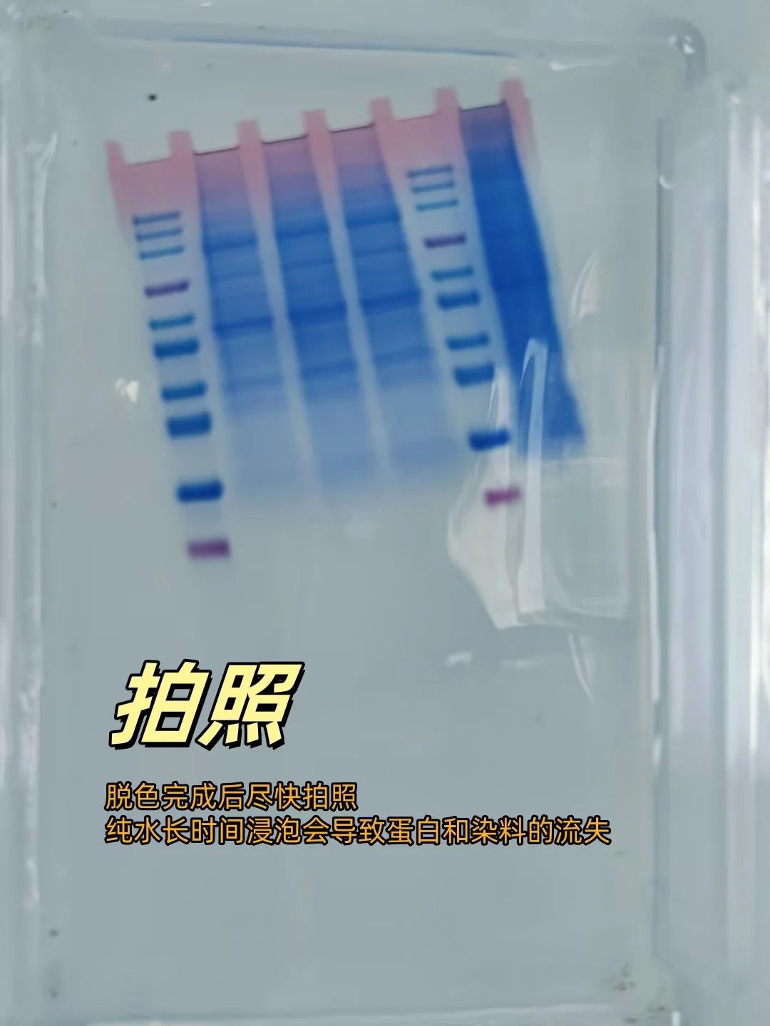 ——染色后請盡快拍照,純水長時間浸泡會導致蛋白和染料的流失。