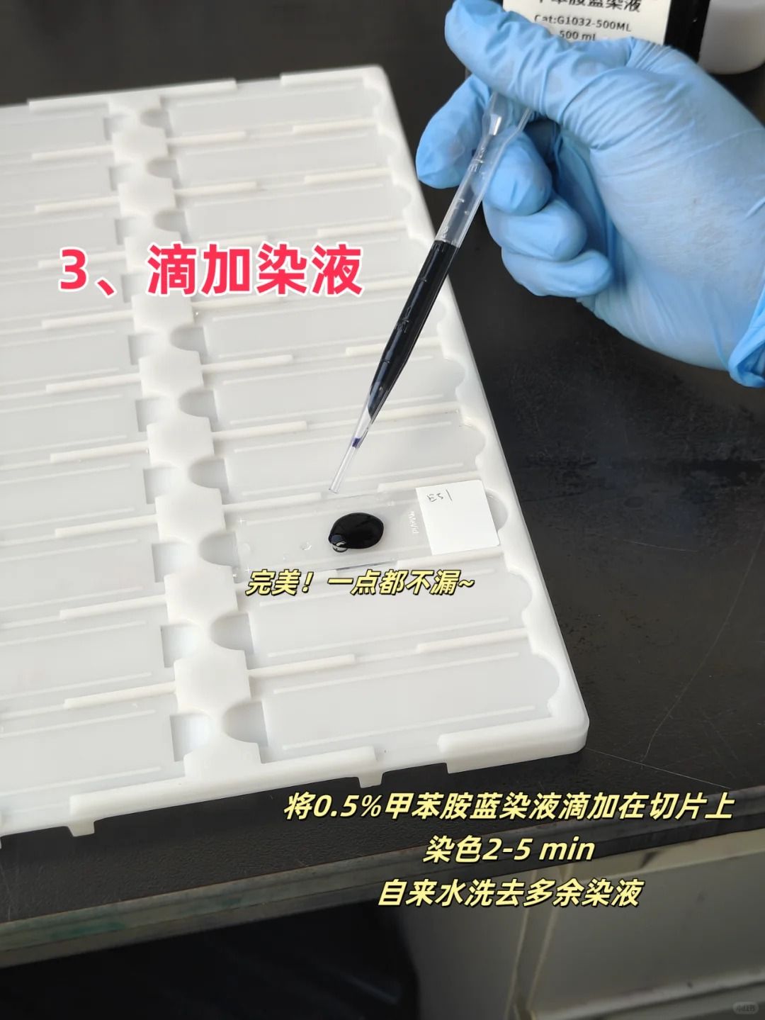 Step7:將切片放入甲苯胺藍染色液中,染色時間通常為20~30分鐘。具體時間可根據(jù)實驗需求和切片情況適當調(diào)整。