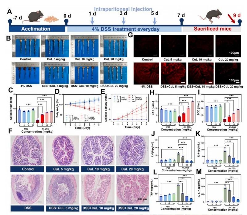 4.動物模型:在典型的IBD小鼠模型(如潰瘍性結(jié)腸炎和克羅恩病)中驗證CuL NCs的預(yù)防和治療效果。