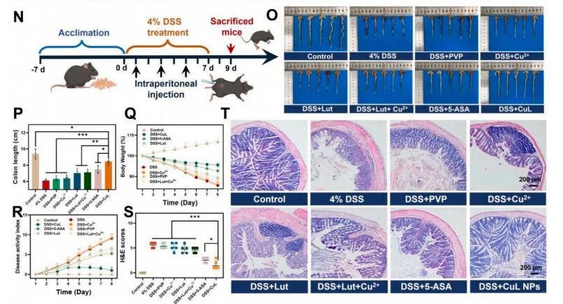 4.動物模型:在典型的IBD小鼠模型(如潰瘍性結(jié)腸炎和克羅恩?。┲序炞CCuL NCs的預(yù)防和治療效果。