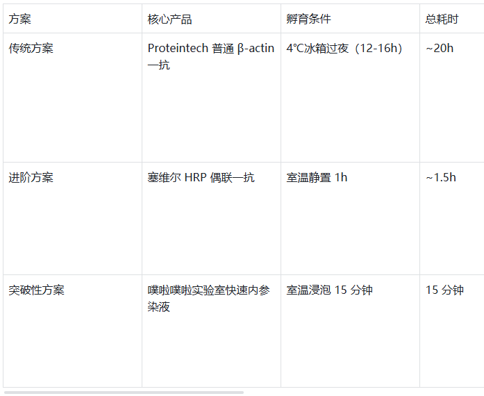 作為日均處理 4-8 塊膠的 WB 實(shí)驗(yàn)高頻操作者,親測(cè)噗啦噗啦實(shí)驗(yàn)室快速內(nèi)參染液后,徹底顛覆傳統(tǒng)內(nèi)參檢測(cè)認(rèn)知 —— 其將 WB 內(nèi)參檢測(cè)耗時(shí)從傳統(tǒng)方案的 20h、進(jìn)階方案的 1.5h,直接壓縮至15 分鐘,效率足足提升 60-80 倍!更關(guān)鍵的是,條帶清晰度、特異性與傳統(tǒng)方法毫無(wú)差異,在高樣本量實(shí)驗(yàn)場(chǎng)景下,不僅大幅解放人力,更直接降低時(shí)間成本,堪稱 WB 實(shí)驗(yàn)的 “效率革命利器”。