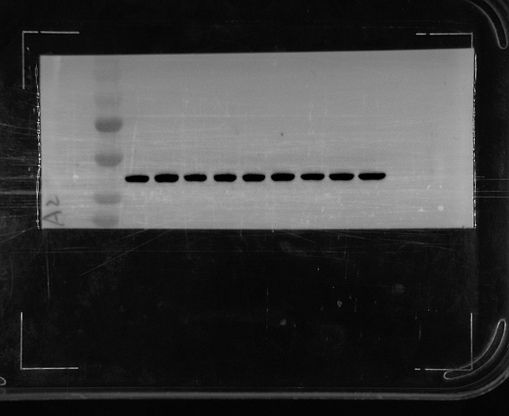 (10)顯影:ECL A和B液按體積1:1混合后均勻滴加在膜上,按需求設(shè)置曝光時間及曝光類型,開始曝光,曝光結(jié)束后保存圖片并導出圖片。