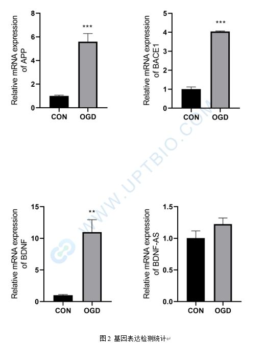 2、提取總RNA檢測BDNF(Gene ID: 627)、APP( Gene ID: 351)、BACE1( Gene ID: 23621)、BDNF-AS的表達(dá)(默認(rèn)最長的轉(zhuǎn)錄本)