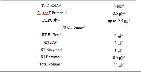 1. 按以下組份分別配制逆轉(zhuǎn)錄反應(yīng)液: