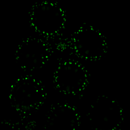 細(xì)胞在發(fā)生凋亡時(shí),會(huì)激活一些DNA內(nèi)切酶,這些內(nèi)切酶會(huì)切斷核小體間的基因組DNA。細(xì)胞凋亡時(shí)抽提DNA進(jìn)行電泳檢測(cè),可以發(fā)現(xiàn)180~200bp的DNA ladder?;蚪MDNA斷裂時(shí),暴露的3'-OH可以在末端脫氧核苷酸轉(zhuǎn)移酶(Terminal Deoxynucleotidyl Transferase, TdT) 的催化下加上熒光標(biāo)記,產(chǎn)生很強(qiáng)的顏色反應(yīng),從而可以通過(guò)顯微鏡檢測(cè)細(xì)胞凋亡的情況。本次實(shí)驗(yàn)所用到的試劑盒中凋亡樣本會(huì)被標(biāo)記為綠色,與碘化丙啶標(biāo)記的紅色全細(xì)胞背景重疊后呈黃色。