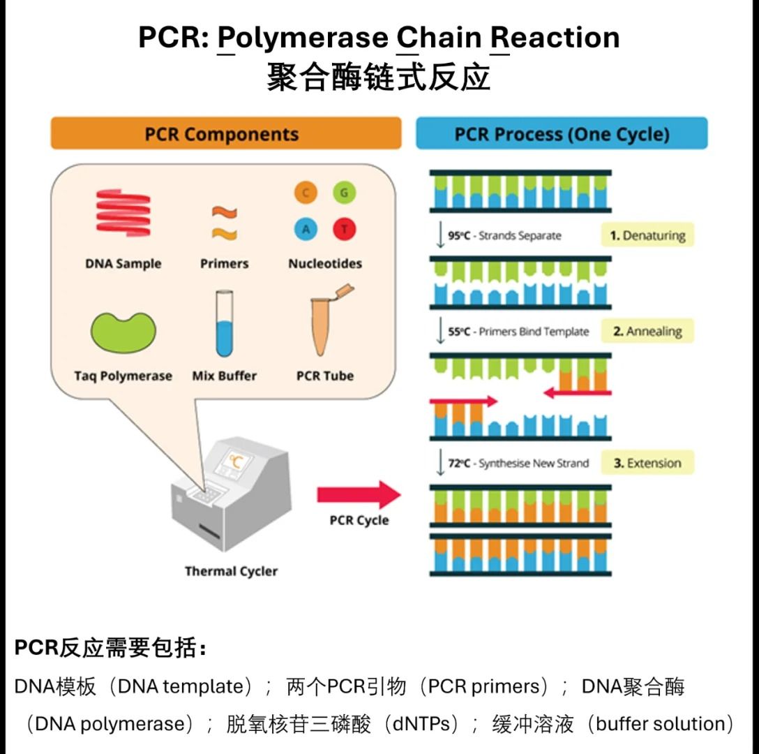 PCR是一種體外擴增特定DNA片段的分子生物學技術。其原理基于DNA的半保留復制和熱變性原理,通過控制溫度使DNA雙鏈解聚成單鏈,然后引物與單鏈DNA結(jié)合,在DNA聚合酶的作用下合成互補鏈,從而實現(xiàn)DNA的指數(shù)級擴增。