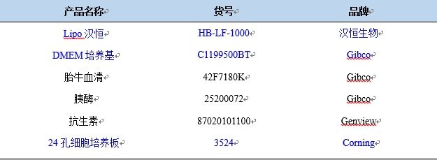 (4) 棄去板中原有培養(yǎng)基,把混合液加入到細(xì)胞培養(yǎng)板中;4~6h后換成完全培養(yǎng)基。