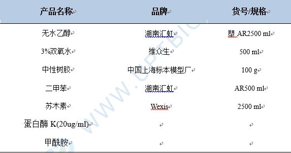 1、組織固定:組織取出洗凈后立即放入固定液(DEPC水配制)中固定2-12h。