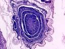 蘇木精-伊紅染色法簡(jiǎn)稱HE染色法,是最常用的染色方法。蘇木精(hematoxylin)是陽(yáng)離子染料,能夠?qū)⒓?xì)胞核內(nèi)的嗜堿性物質(zhì)染成藍(lán)紫色。伊紅(eosin)是陰離子染料,能夠?qū)⒓?xì)胞質(zhì)和膠原纖維等染成粉紅色。