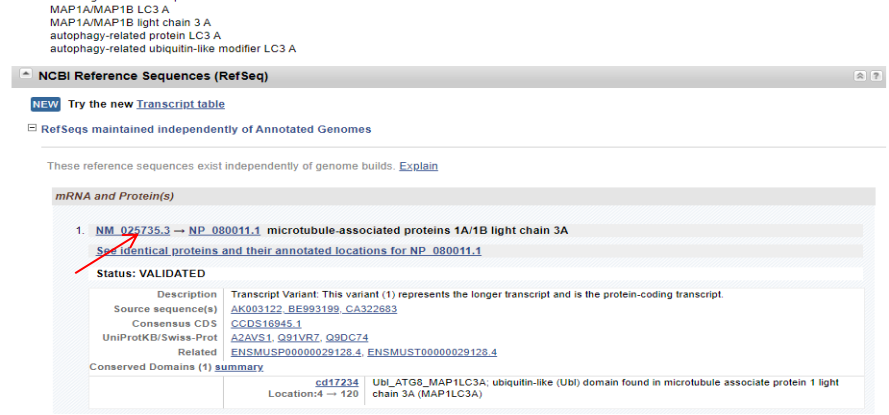 mRNA和Protein序列:點擊NM開頭的轉(zhuǎn)錄本,跳轉(zhuǎn)進(jìn)去就是mRNA,點擊Fasta,就可以下載mRNA序列;點擊NP就能得到mRNA對應(yīng)的蛋白序列。