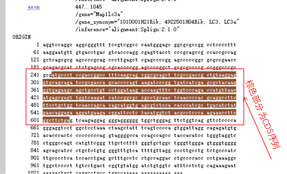 下翻可見其CDS序列,點擊CDS,CDS序列被標(biāo)記,可復(fù)制CDS序列。