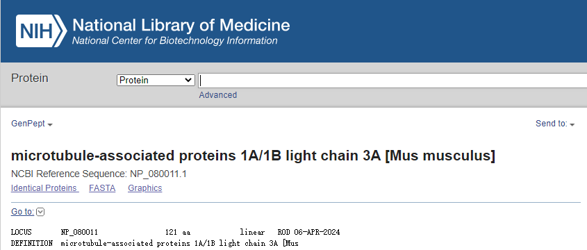 同理蛋白質(zhì)序列可點擊該頁面的NP編號,點擊FASTA,即可得到蛋白序列。