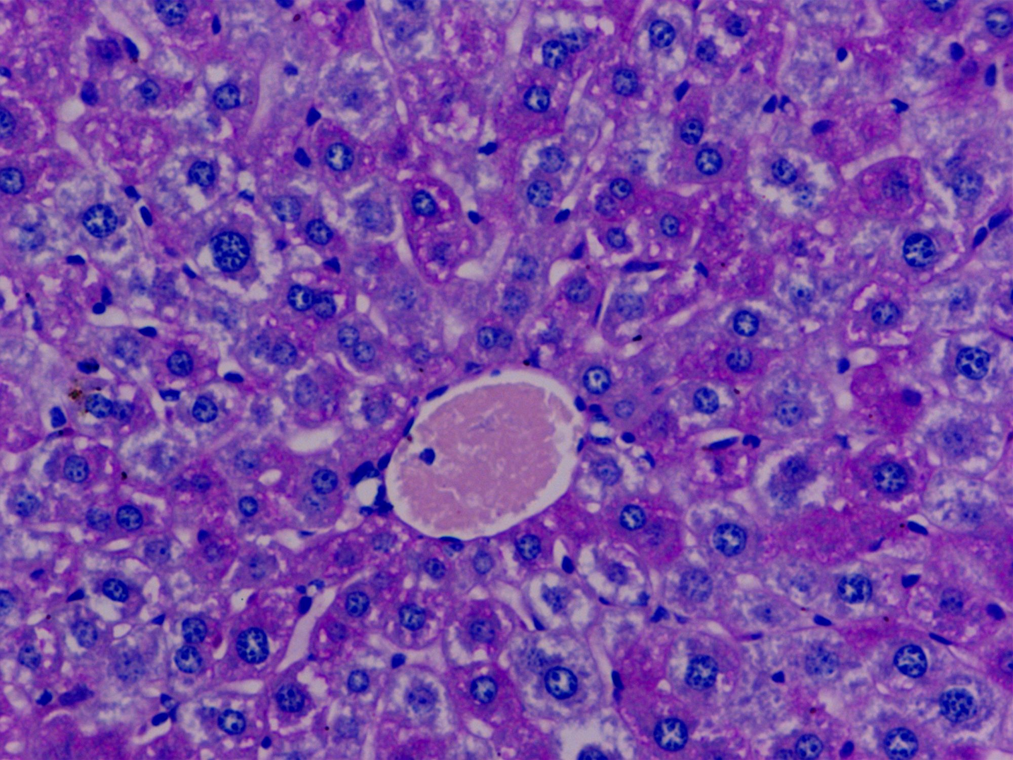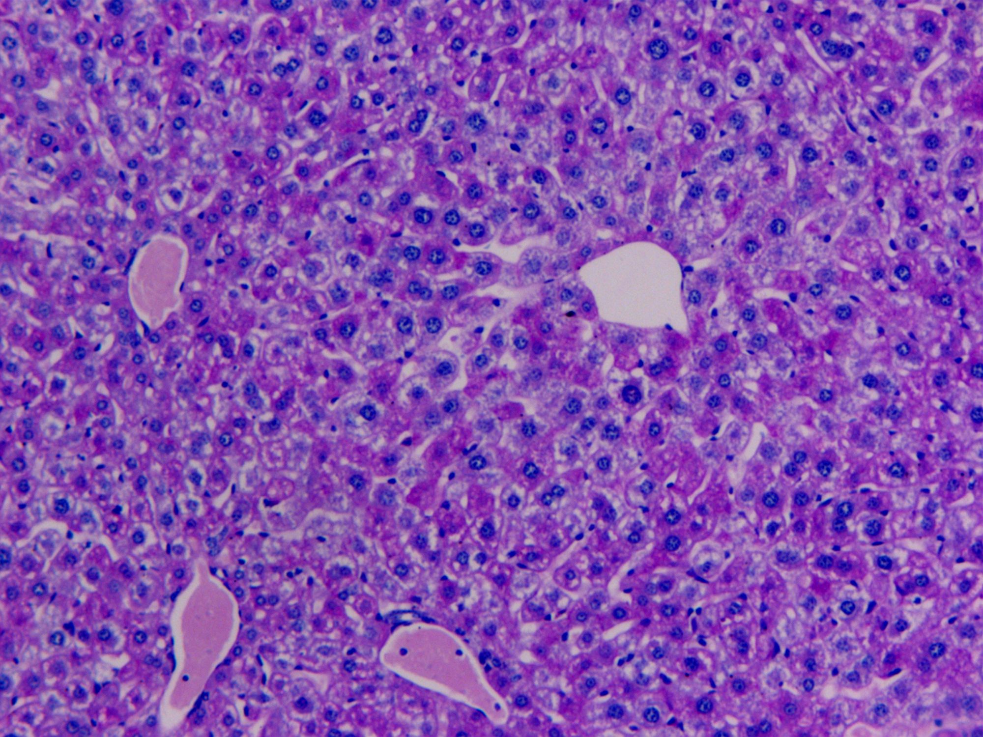 PAS染色法(Periodic Acid-Schiff stain)在組織學上,又稱過碘酸雪夫染色,糖原染色。一般用來顯示糖元和其它多糖物質,過碘酸把糖類相鄰兩個碳上的羥基氧化成醛基,再用Schiff試劑和醛基反應使呈現(xiàn)紫紅色。